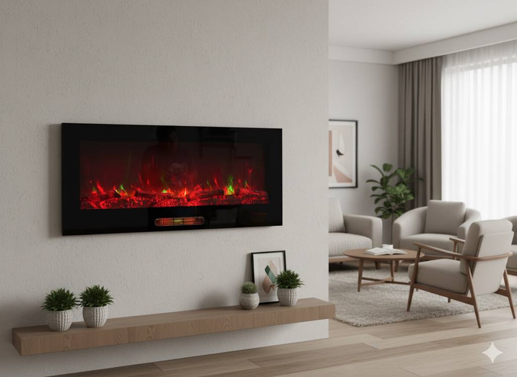 این شومینه برقی با طراحی مینیمال و مشکی براق، در هر فضایی جلوهگر است: